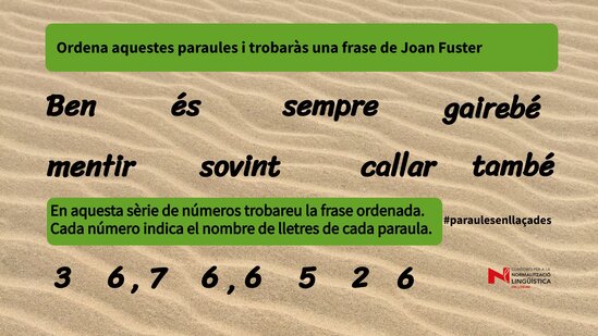 Ordeneu les paraules i descobrireu una frase de Joan Fuster.