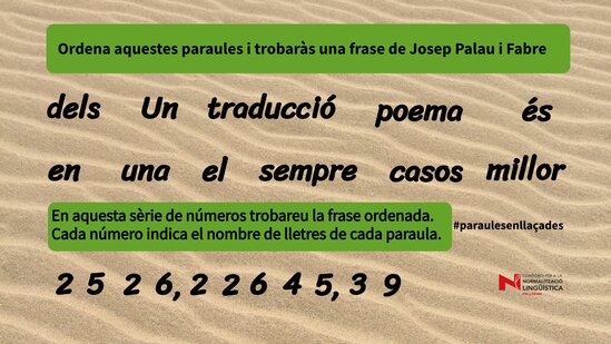 Ordeneu les paraules i descobrireu una frase de Miquel Martí i Pol.
