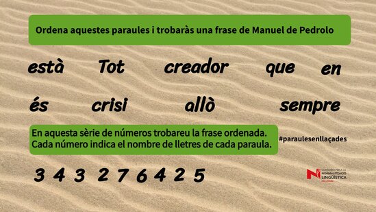 Ordeneu les paraules i descobrireu una frase de Manuel de Pedrolo.