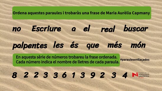 Ordeneu les paraules i descobrireu una frase de Maria Aurèlia Capmany .