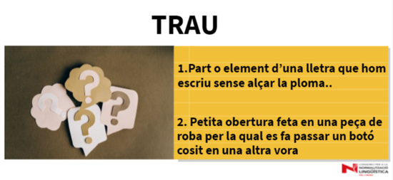 Sabeu quina d'aquestes dues definicions correspon a la paraula trau?