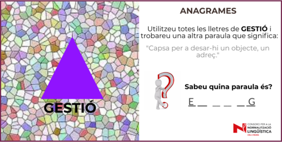 Utilitzeu totes les lletres de la paraula gestió i en trobareu una altra que significa “capsa per a desar-hi un objecte, un adreç”.