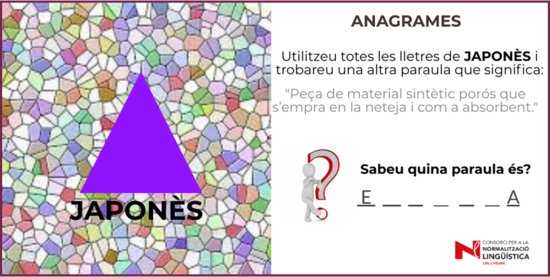 Utilitzeu totes les lletres de la paraula japonès i en trobareu una altra que significa “peça de material sintètic porós que s’empra en la neteja i com a absorvent”.