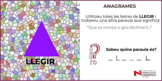 Utilitzeu totes les lletres de la paraula llegir i en trobareu una altra que significa “que es tomba o gira fàcilment”.