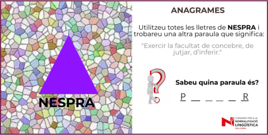 Utilitzeu totes les lletres de la paraula nespra i en trobareu una altra que significa “exercir la facultat de concebre, de jutjar, d’inferir”.