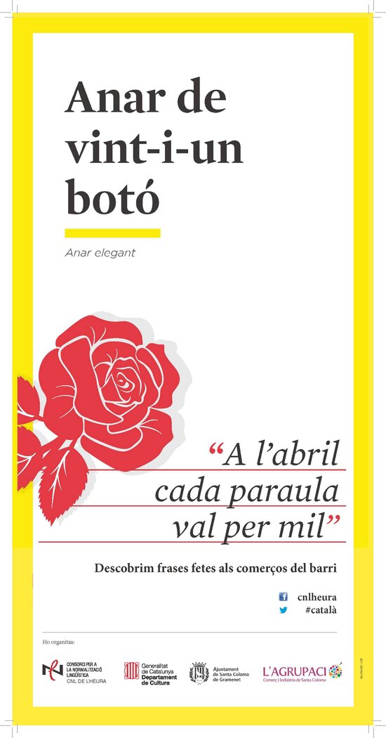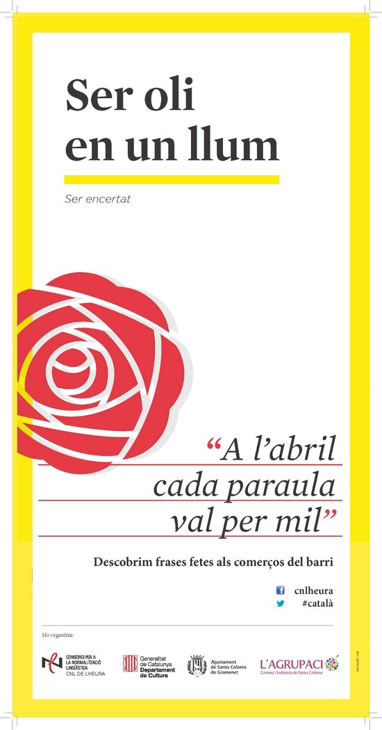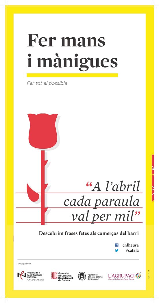 Campanya de l'any 2017 feta en col·laboració amb l'Agrupació del Comerç i la Indústria i els establiments col·laboradors del Voluntariat per la llengua.