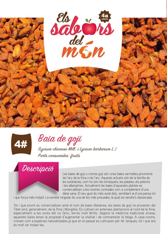 Les baies de goji es poden menjar barrejades amb musli, cereals d'esmorzar, amanides o iogurt. També es poden macerar en alcohol i emprar en plats cuinats com si es tractés d'una pansa de raïm. La melmelada i les postres fetes amb aquest fruit tenen molt bon sabor.