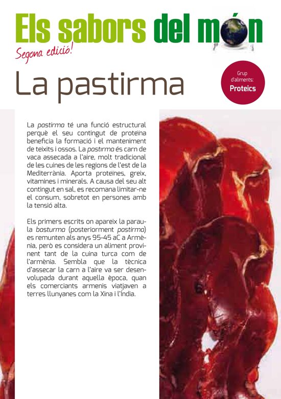 La pastirma té una funció estructural perquè el seu contingut de proteïna beneficia la formació i el manteniment de teixits i ossos. La pastırma és carn de vaca assecada a l'aire, molt tradicional de les cuines de les regions de l'est de la Mediterrània. Aporta proteïnes, greix, vitamines i minerals. A causa del seu alt contingut en sal, es recomana limitar-ne el consum, sobretot en persones amb la tensió alta.