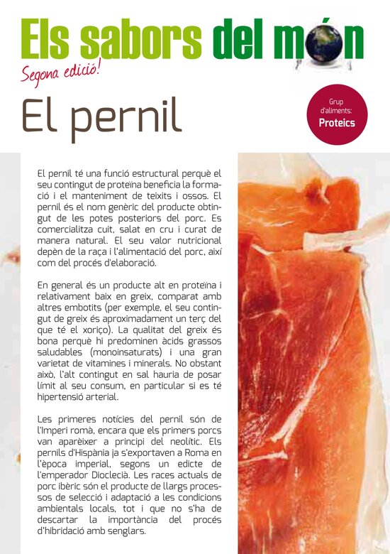 El pernil té una funció estructural perquè el seu contingut de proteïna beneficia la formació i el manteniment de teixits i ossos. El pernil és el nom genèric del producte obtingut de les potes posteriors del porc. Es comercialitza cuit, salat en cru i curat de manera natural. El seu valor nutricional depèn de la raça i l'alimentació del porc, així com del procés d'elaboració.