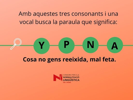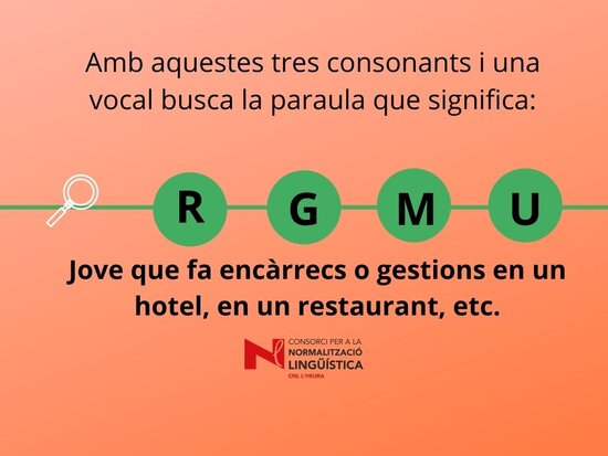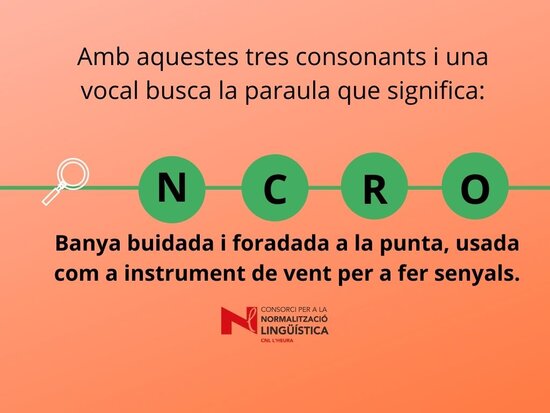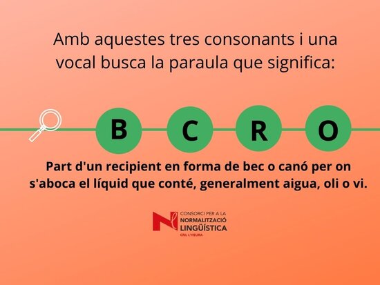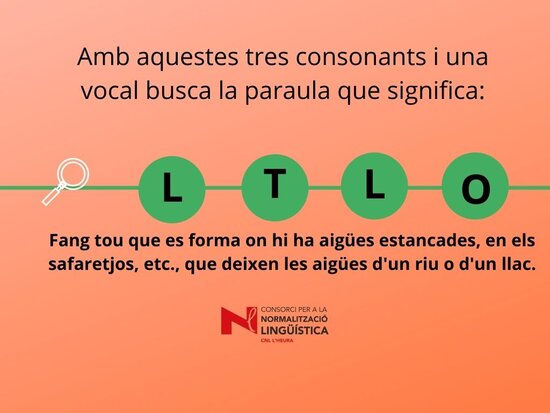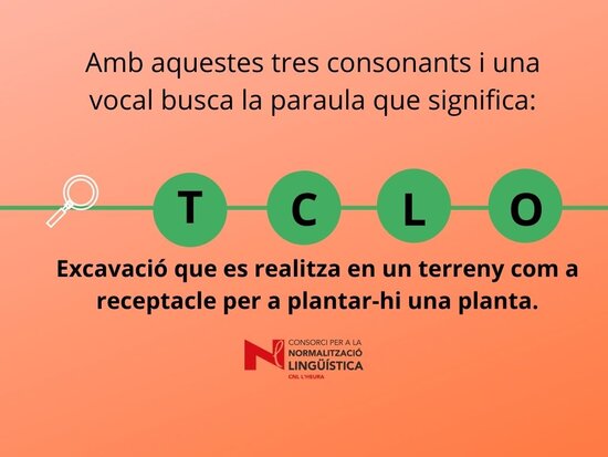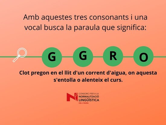 Joc lingüístic on s’ha de descobrir quina paraula amaguen les 4 lletres. Us pot ajudar la definició del mot. Març 2022