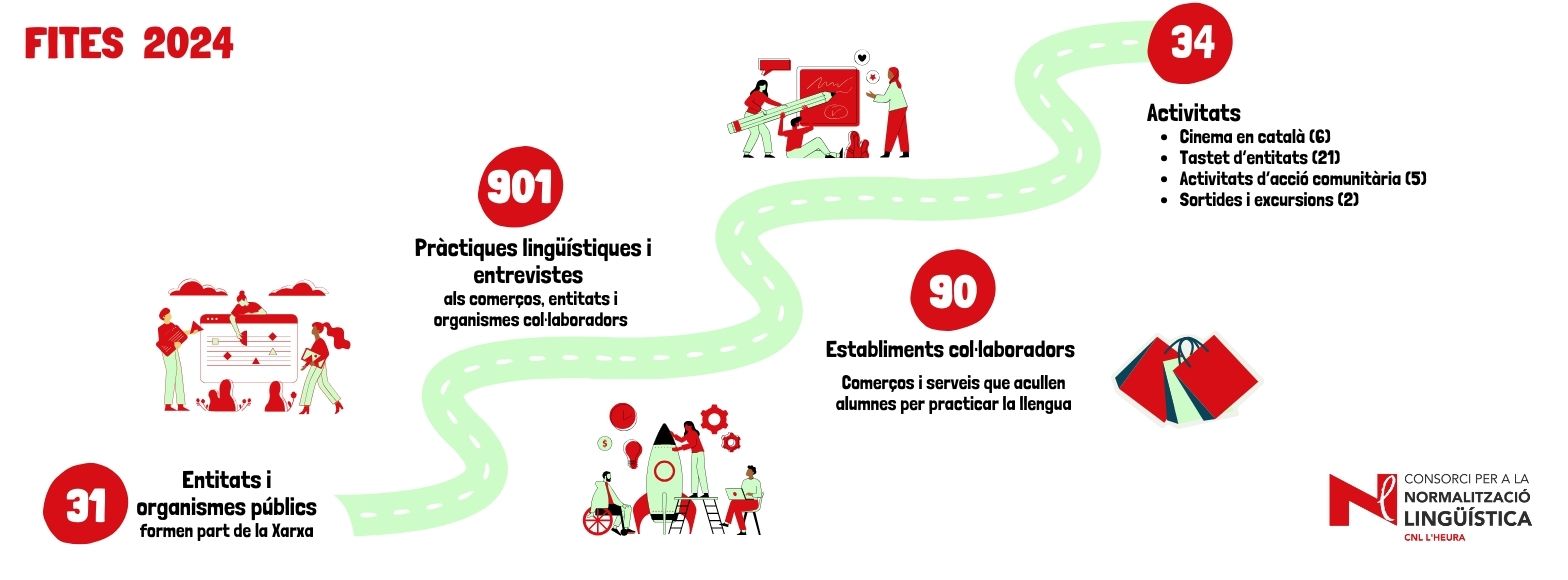 La Xarxa per la llengua és un conjunt d'entitats, ens públics, empreses i comerços que tenen un compromís amb el foment de la llengua catalana a la nostra ciutat. El Centre de Normalització Lingüística L'Heura coordina les organitzacions que formen part de la Xarxa, i els dona suport.