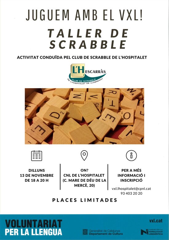 Aquesta activitat estarà conduïda per L'Hescarràs Club de Scrabble de l'Hospitalet, entitat col·laboradora del programa Voluntariat per la llengua.