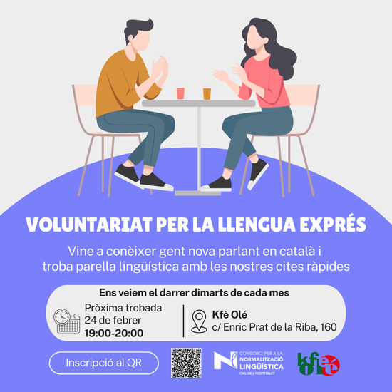 El VxL exprés és com un speed dating lingüístic: durant una hora, els participants canviaran de parella cada cinc minuts per conversar amb molta gent i trencar el gel ràpidament. Està pensat tant per a qui vol parlar més català com per a qui vol ajudar els altres a fer-lo servir. Al final, animarem els participants a formar una parella lingüística amb algú que hagin conegut.