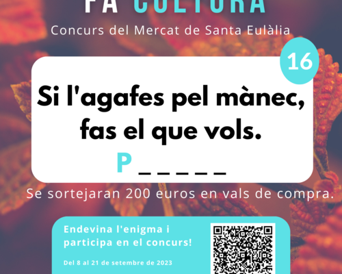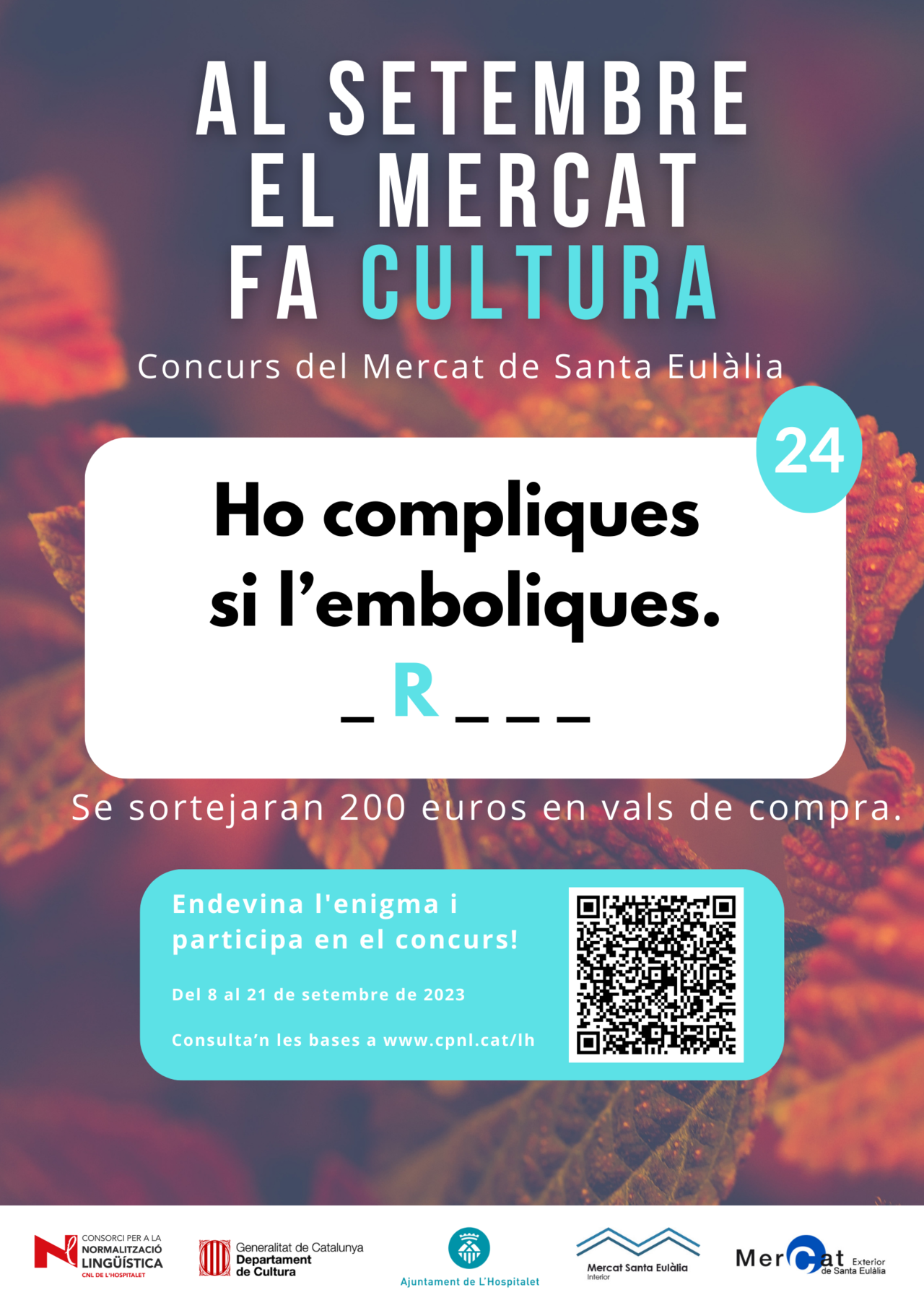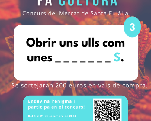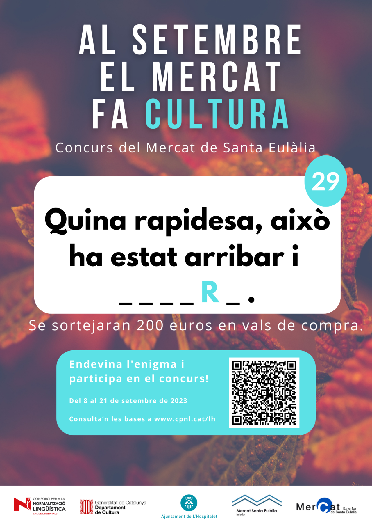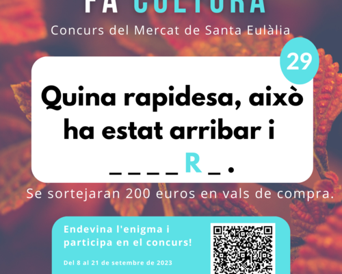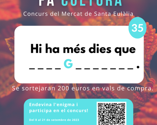 Fins al dia 21 de setembre encara hi sou a temps! Guaiteu els 35 cartells accediu al formulari a través del codi QR i escriviu la solució dels enigmes!
