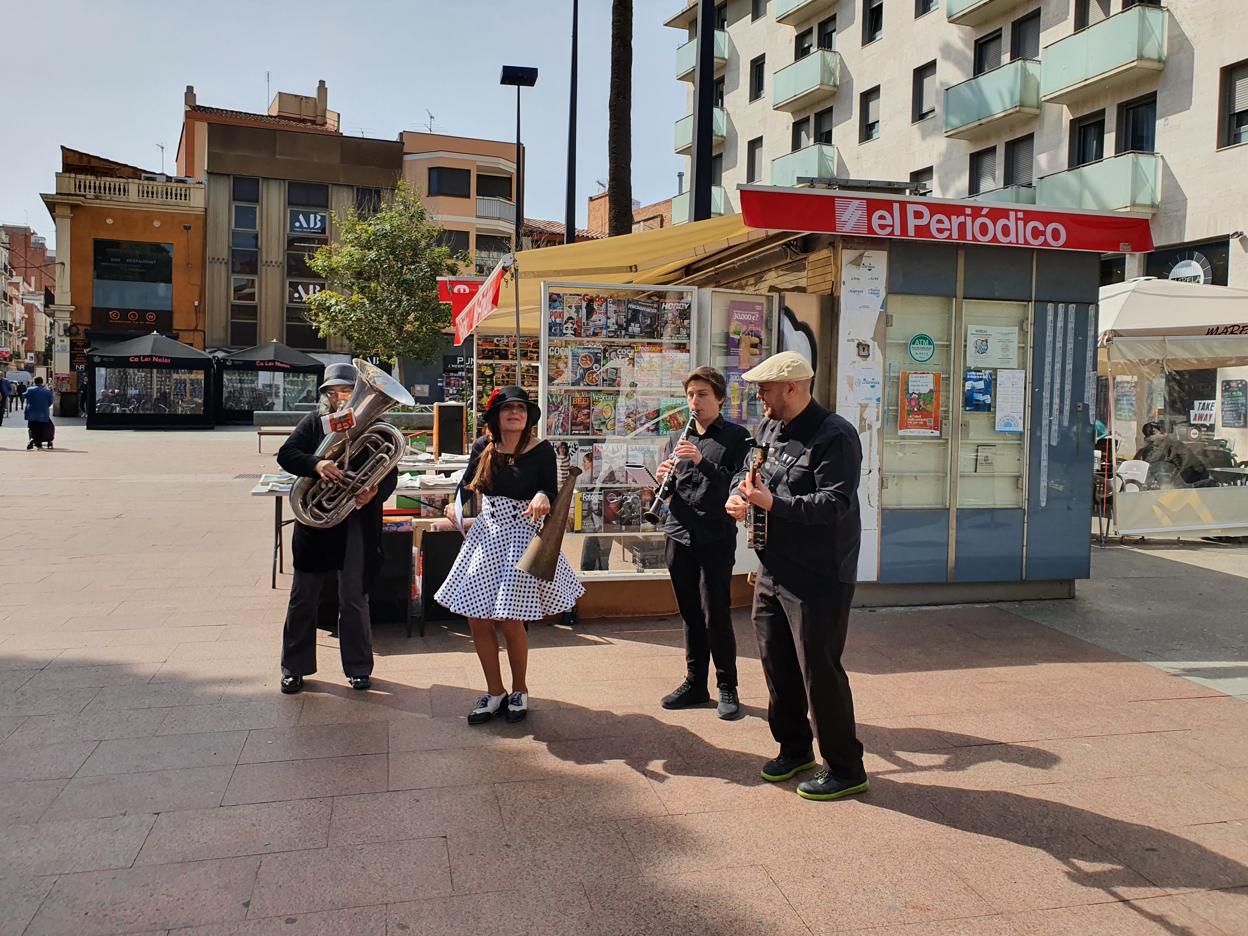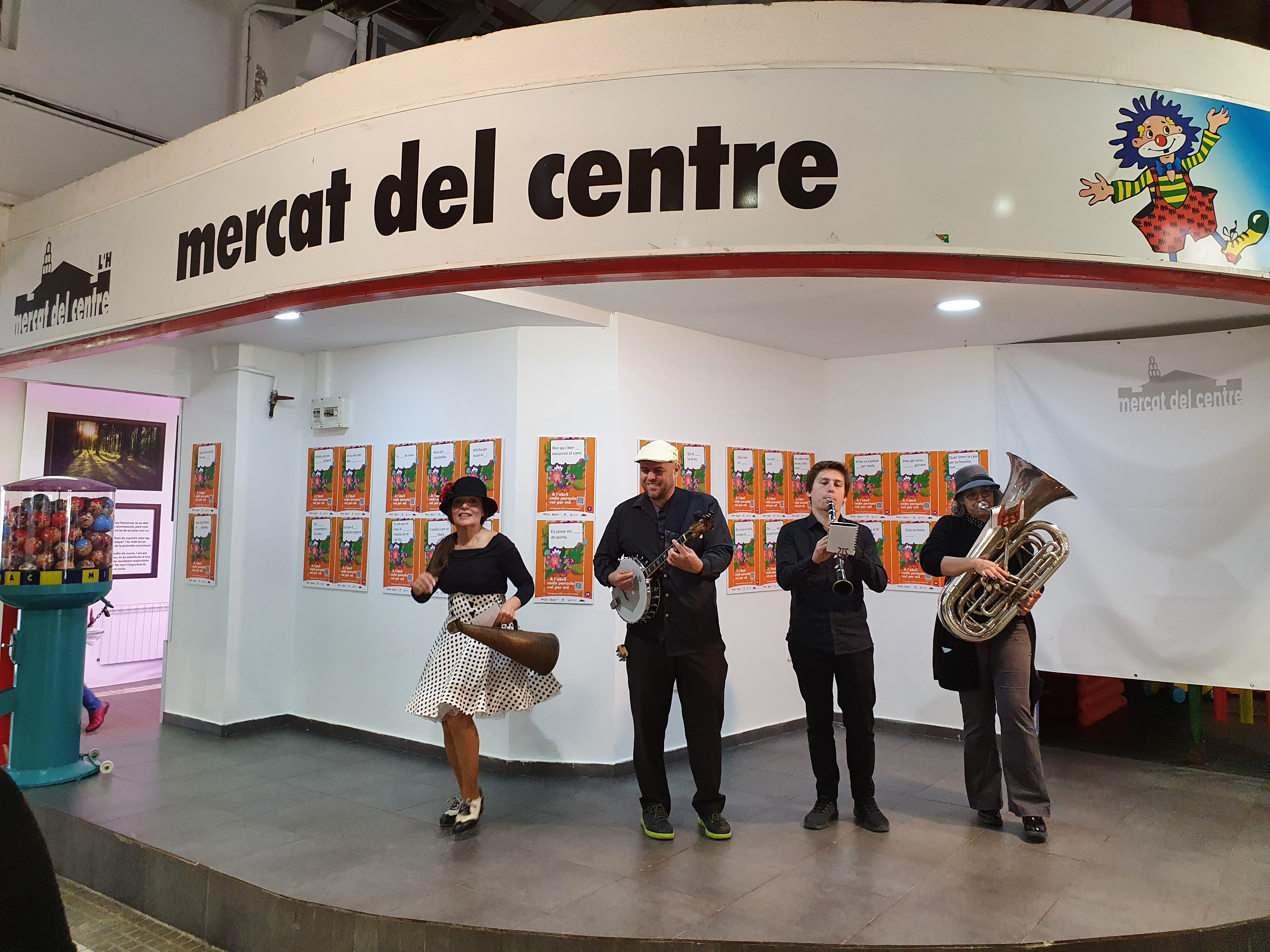 El passat divendres, 22 d'abril, vam celebrar la vigília de Sant Jordi amb un concert i endevinalles al barri del Centre. Aquesta activitat estava emmarcada en la campanya A l'abril cada paraula val per mil que fem conjuntament amb el Mercat del Centre i el Grup Botigues del Centre i Sant Josep. El trio de jazz "Apocadixie Cotton Pickers" va omplir de música el mercat i els carrers del voltant. Aquesta acció va servir per fomentar la participació en la campanya que ja es troba en la seva setmana final. Els comprador del Mercat i els vianants van poder participar de l'espectacle i se'ls va repartir informació sobre com participar del concurs.