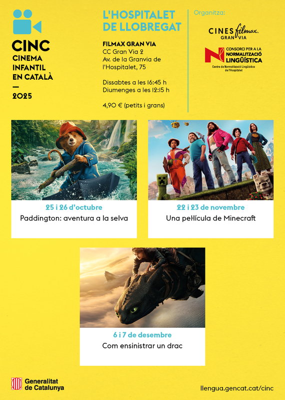 Aquest mes d’octubre, les famílies de l'Hospitalet podran gaudir novament del Cicle de Cinema Infantil en Català (CINC), una iniciativa que promou l'ús del català en els espais d'oci familiar més enllà de l'escola. Edició rere edició, el cicle ha tingut una gran acollida i s'ha consolidat com una activitat cultural destacada a la ciutat.