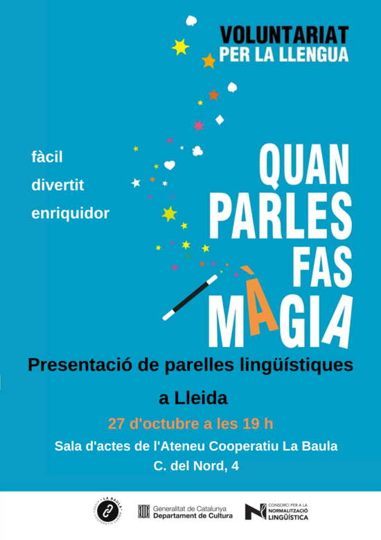 Iniciem una nova edició de parelles lingüístiques formades a la ciutat de Lleida. La presentació serà a la sala d’actes de l’Ateneu Cooperatiu La Baula.
