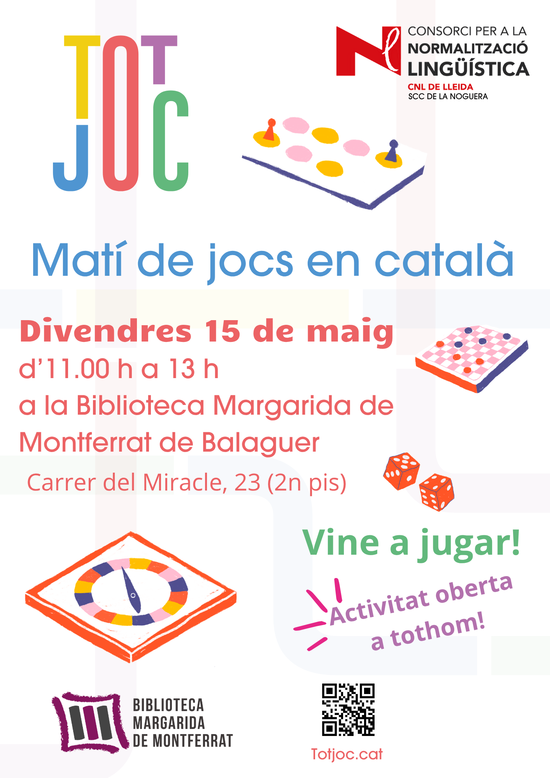 Sessió de jocs de taula en català amb la participació d'alumnes dels cursos de català, parelles lingüístiques del programa Voluntariat per la llengua, usuaris de la Biblioteca municipal, entre altres. Activitat oberta a tothom.