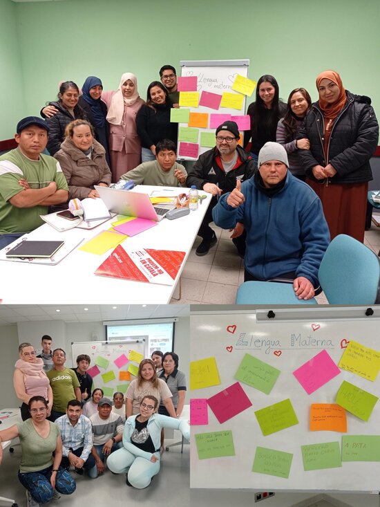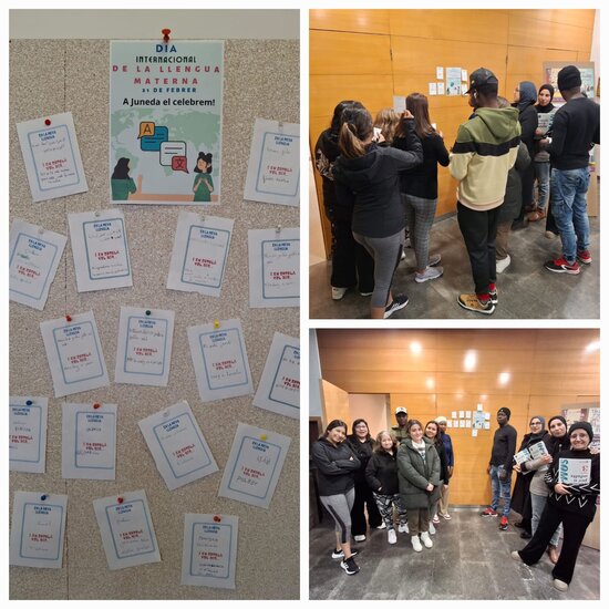 Els alumnes dels cursos de català de les Borges Blanques i de Juneda van fer un mural amb paraules i expressions en la seva llengua