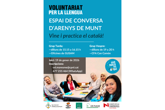 Iniciem novament l'espai de conversa en català d'Arenys de Munt dinamitzat per voluntaris lingüístics, un format pensat per potenciar l'expressió oral de persones que tenen un coneixement bàsic de la llengua.