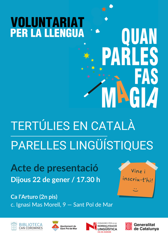Presentació de les tertúlies en català i de les parelles lingüístiques del Voluntariat per la Llengua a Sant Pol de Mar, promogudes conjuntament entre la Biblioteca Can Coromines, els serveis socials del municipi i el Centre de Normalització Lingüística del Maresme.