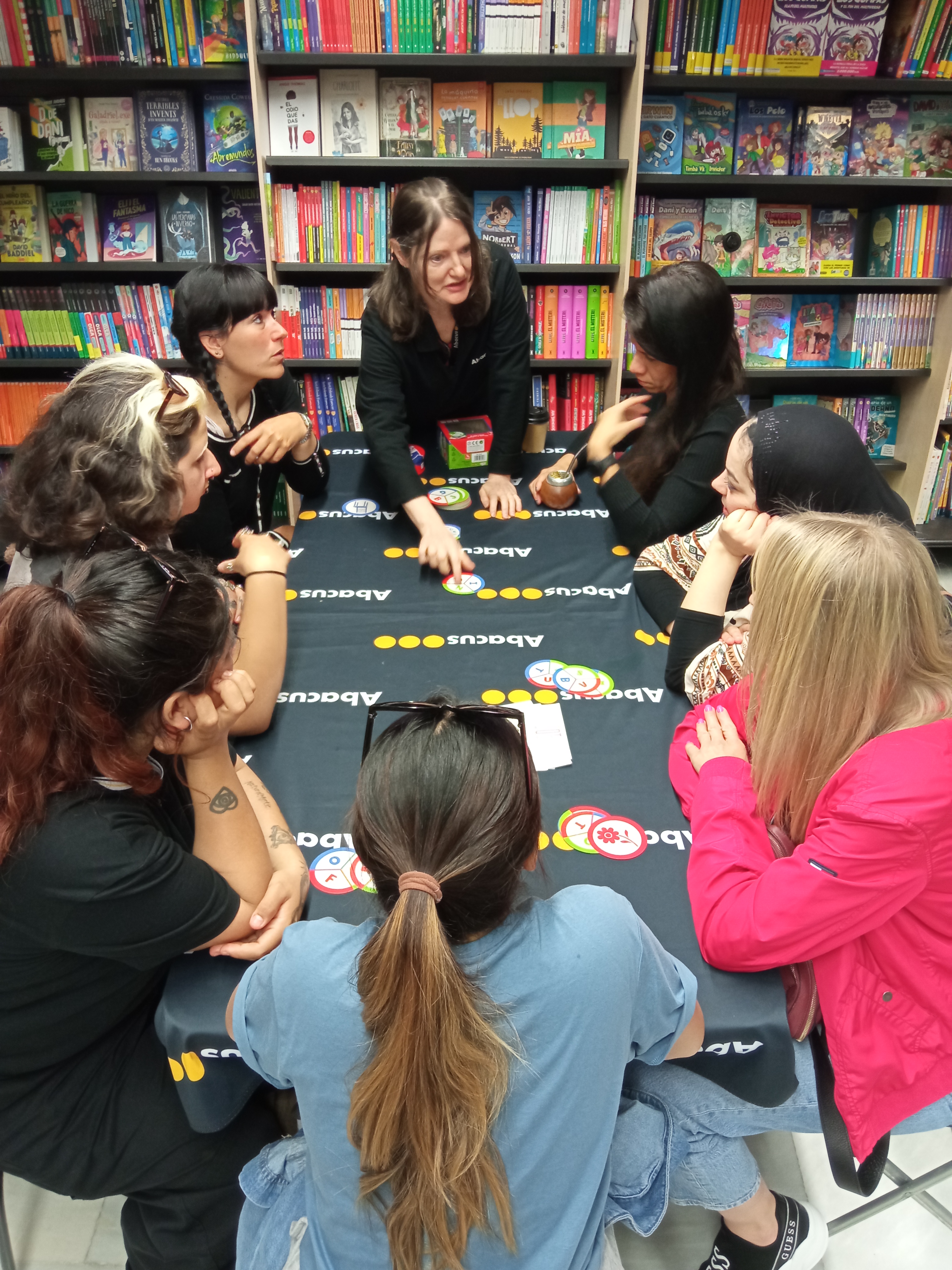 Els alumnes de nivell Bàsic 1 i Bàsic 3 van descobrir que l'activitat lúdica fora de l'aula els permet posar en pràctica tot allò après a classe. Aprendre tot jugant! Tot un repte assolit gràcies a la professionalitat i la dedicació del personal d'Abacus Mataró, que compta amb una experta joguinòloga que organitza i dirigeix les dinàmiques de joc i amb un equip de col·laboradores igualment implicades i engrescades amb els valors i les habilitats que s'aprenen en jugar. Així, la tria de jocs va ser l'adequada al nivell de llengua dels nostres alumnes: el Lletra a lletra, el Parauleja, el Codi Secret, i l'¡Olé! Guacamole, un joc de cartes per trobar paraules que permet jugar-hi en català.
