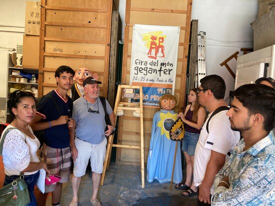 Els alumnes de català del curs Bàsic 1, organitzat en col·laboració amb l'Escola d'Adults Natura, van visitar la seu dels geganters de Pineda de Mar dimecres passat.