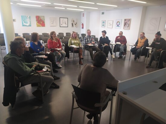 Alumnes del nivell Intermedi participen d'una nova tertúlia amb la voluntària lingüística, Carme Giol