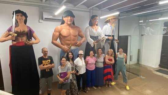 Els alumnes del curs Bàsic 1 visiten els geganters de Pineda de Mar
