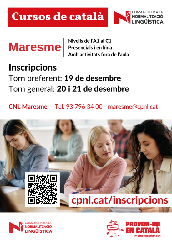 Les inscripcions als 45 cursos de català del Centre de Normalització Lingüística del Maresme seran del 19 al 21 de desembre