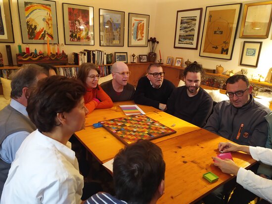 El curs intermedi va assistir a una classe especial: una matinal de jocs lingüístics a casa de l'artista masnoví Roger Puig