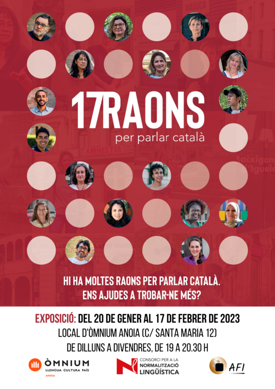 Taula rodona amb la intervenció de dos protagonistes de l'exposició "17 raons per parlar català", en què parlarem del procés d'integració i dels avantatges de parlar català.