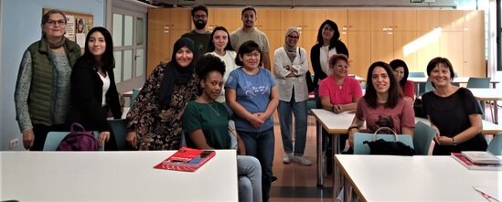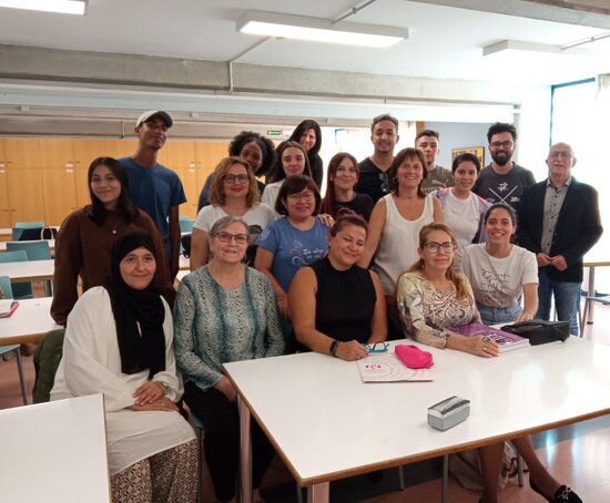 Col·loqui entre dues antigues alumnes, l'Arelí i la Souad, al grup bàsic 3 d'Igualada, per parlar-los dels avantatges d'haver estudiat català pel que fa a més oportunitats personals, laborals i socials.