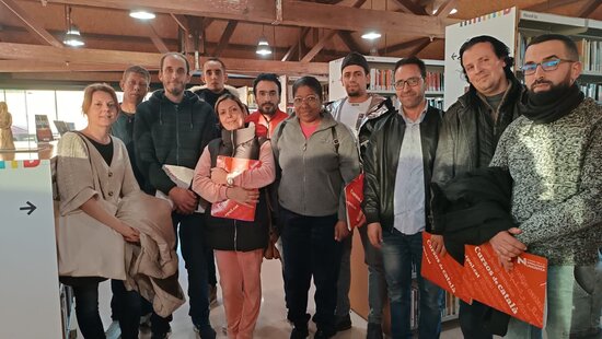 Els alumnes del curs Bàsic 1 i participants del Voluntariat per la llengua del Servei Comarcal de Català de l’Anoia han visitat el Museu Molí Paperer i l'Abric Romaní de Capellades.
