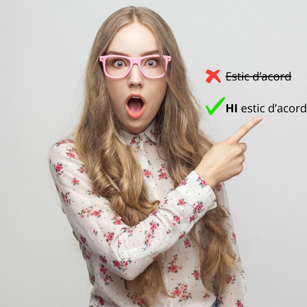Pel que fa a l'omissió d'alguns pronoms febles, sobretot dels pronoms HI i EN, hi ha errades molt i molt bàsiques que són el resultat d'una interferència profunda del castellà. La frase *Al dentista anirem demà no és correcta, hauria de ser Al dentista hi anirem demà. El primer cas és fruit d'una traducció literal del castellà. El mateix passa amb la frase Tenia molta gana, però ara ja no en té gaire i no pas *Tenia molta gana, però ara no té gaire.