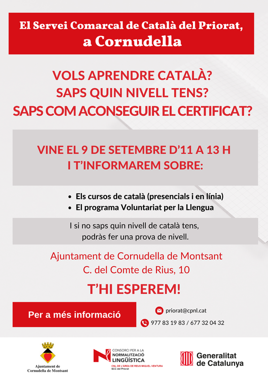 Atenció de consultes sobre cursos de català a Cornudella de Montsant