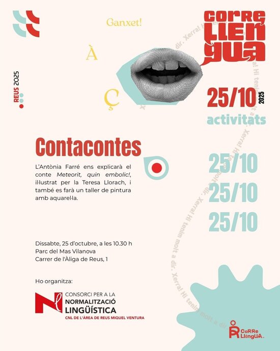 Des del CNL hem organitzat una activitat amb un contacontes. Enguany, l'Antònia Farré ens explicarà el conte "Meteorit, quin embolic!", il·lustrat per la Teresa Llorach, i també es farà un taller de pintura amb aquarel·la.