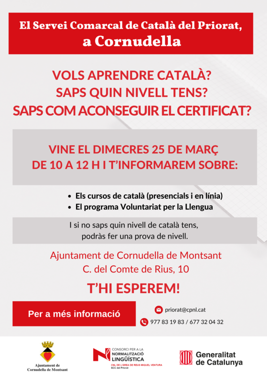 Atenció de consultes sobre cursos de català a Cornudella de Montsant