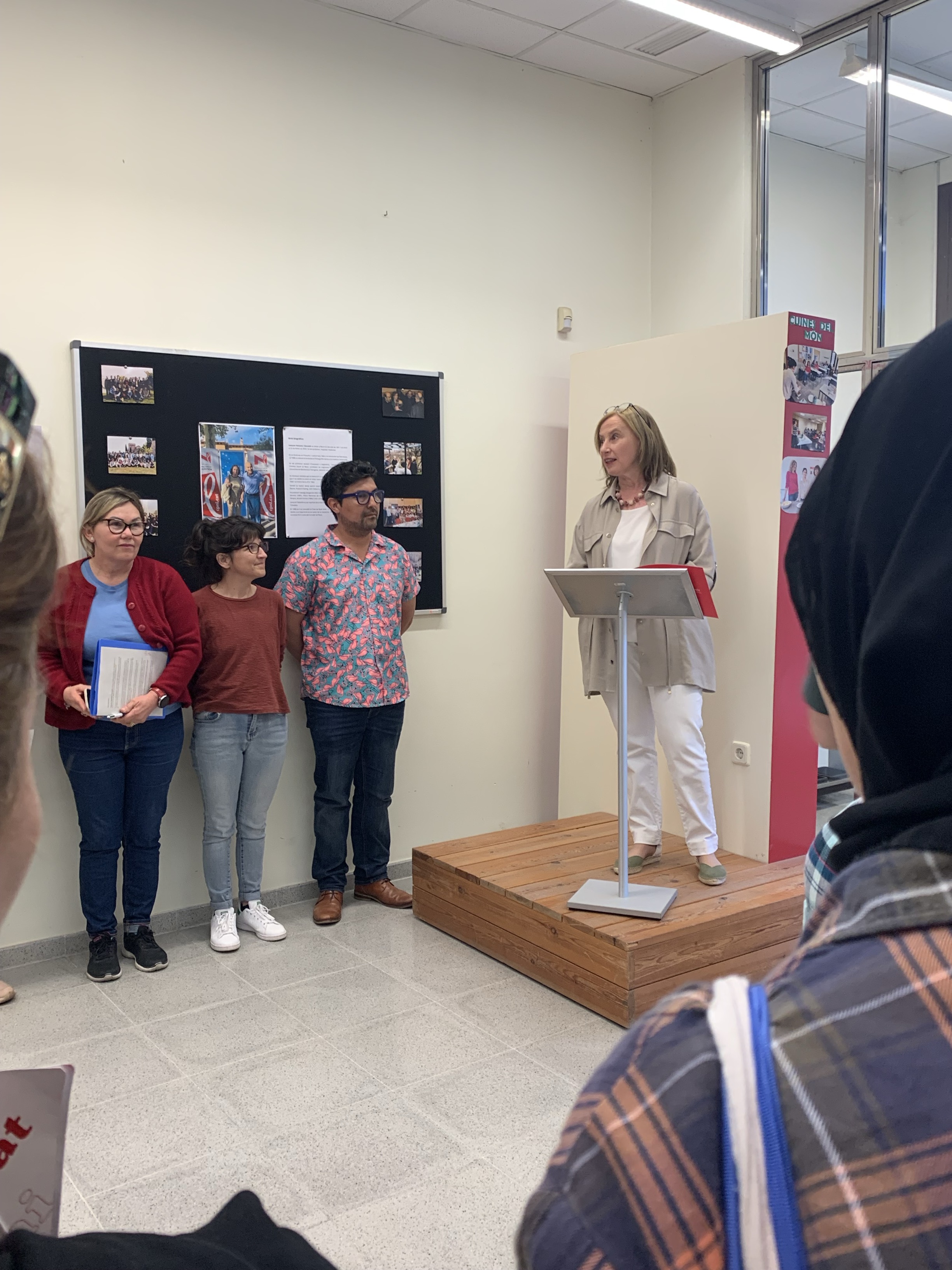 Finalment Carme Buixeda, la vídua de Mallafrè, ha descobert la placa amb el seu nom, i ha tingut unes paraules d'agraïment per als membres del Consell del CNL, el personal i l'alumnat que s'havia congregat al vestíbul de la seu del CNL.
