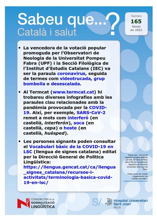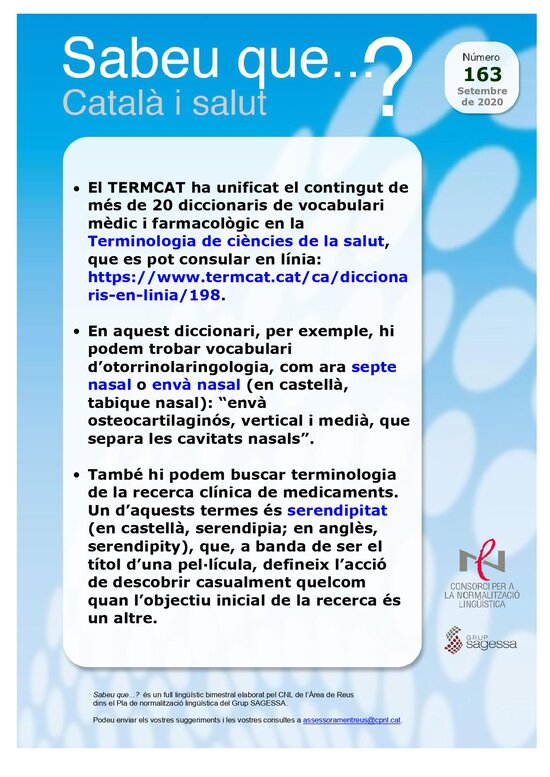 Full amb comentaris lingüístics adreçat al sector de la sanitat
