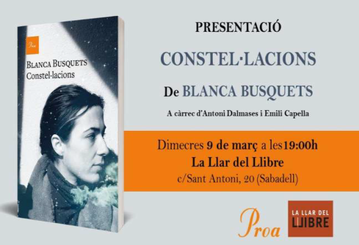 Presentació del llibre “Constel·lacions”, a càrrec de l'autora, Blanca Busquets, i d'Antoni Dalmases i Emili Capella.
