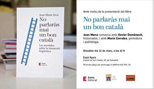 Presentació del llibre “No parlaràs mai un bon català”, a càrrec de l’autor, Joan Mena, i Xavier Domènech i Marina Corrales