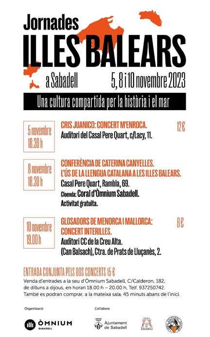 Aquest acte s'emmarca en les Jornades Illes Balears a Sabadell organitzades per Òmnium Sabadell, entitat adherida al VxL. Entrada: 12 € (venda d'entrades a la seu d'Òmnium Sabadell i a la mateixa sala abans de l'inici).