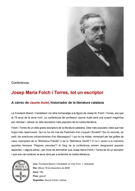 Conferència a Sabadell: “Josep Maria Folch i Torres, tot un escriptor”