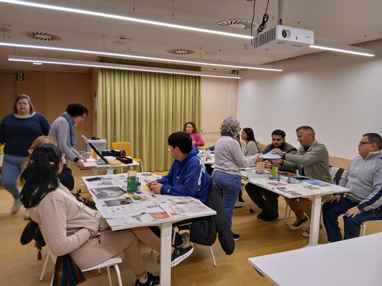 Els alumnes dels cursos de català participen en un taller nadalenc a la Biblioteca l'Alzina