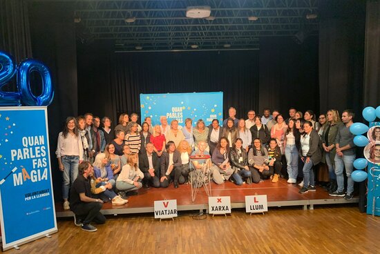 Voluntaris, aprenents, representants institucionals i d'entitats i establiments van omplir ahir el Casal Pere Quart per celebrar el 20è aniversari