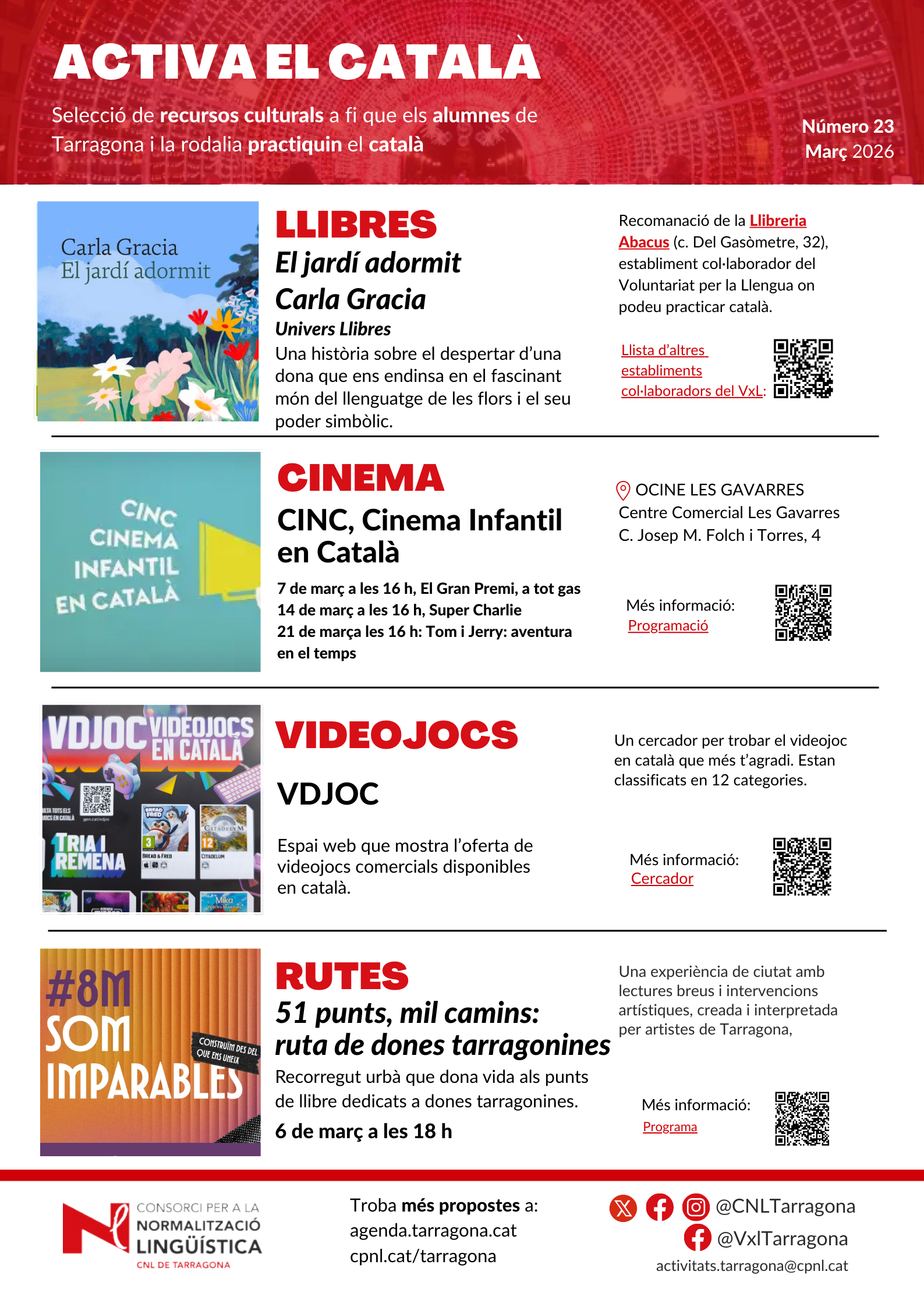 Full mensual amb recursos culturals perquè els alumnes de Tarragona i la rodalia practiquin el català: