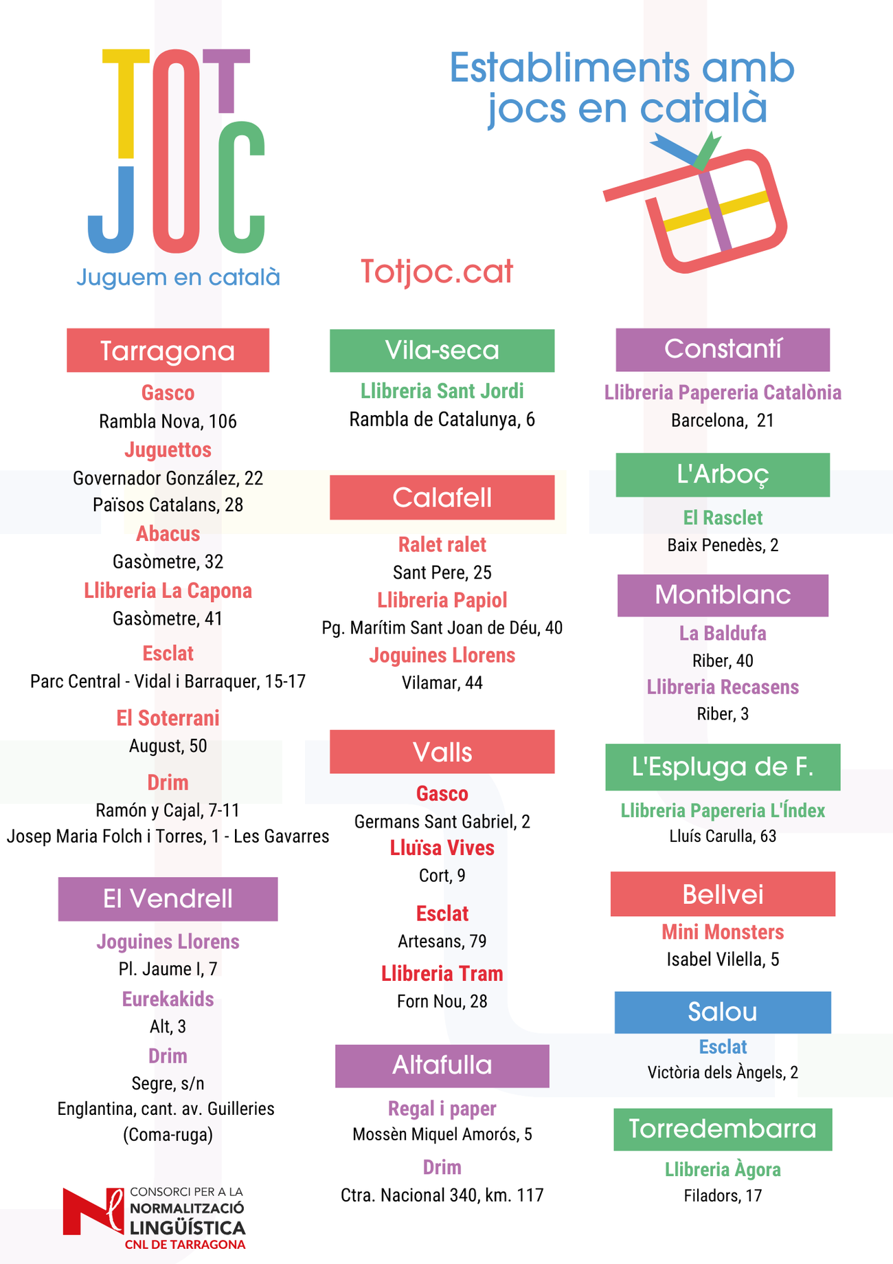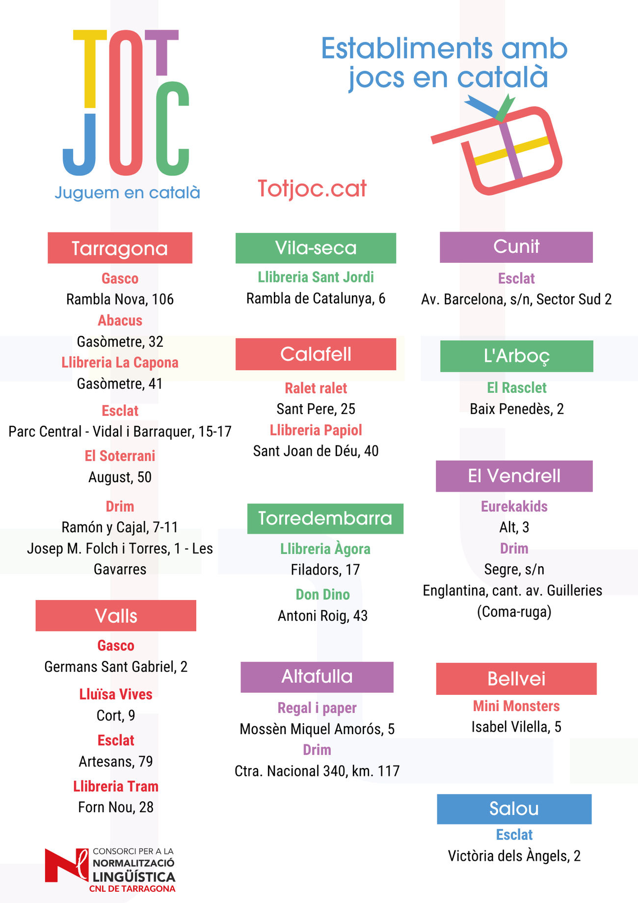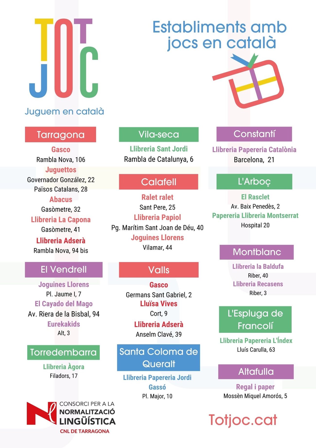 Aquestes botigues de l’àmbit territorial del CNL de Tarragona estan adherides a la campanya i hi podreu trobar jocs en català: