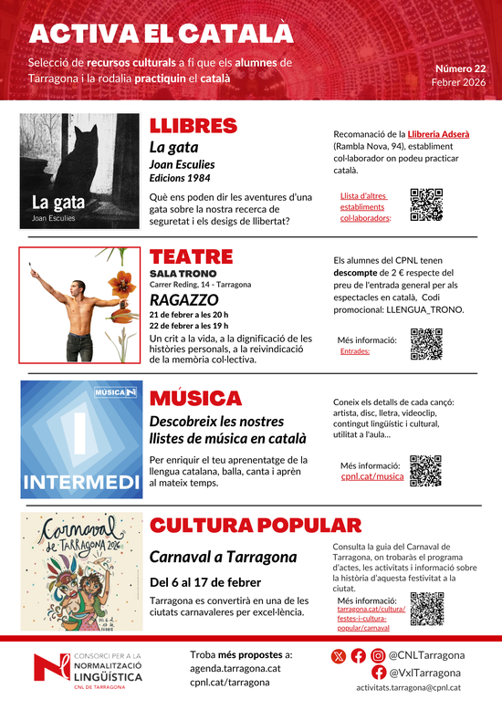 Activa el català és una selecció de propostes culturals perquè els alumnes de Tarragona i la rodalia practiquin el català.
