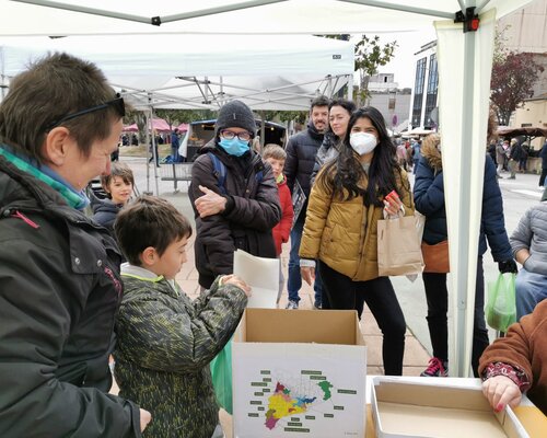 La nostra parada estava situada al costat mateix de la carpa de l'oli, un dels punts més atractius de la fira, on feien els tasts d'olis d'oliva, els participants als qual no van deixar escapar l'oportunitat de participar també en el nostre joc.